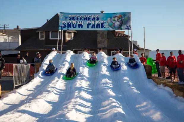 Snow Park open for kids/families of the Friendship Foundation located on upper south parking lot above the Pier.